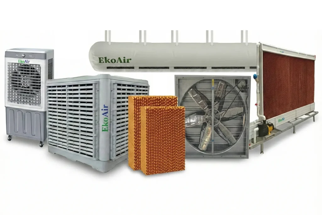 Ekoair, endüstriyel havalandırma ve evaporatif soğutma sistemlerinde Türkiye’nin öncü markasıdır. Çiftlik egzoz fanları, evaporatif soğutucular, soğutucu petekler ve kumaş kanal sistemleri ile endüstriyel tesislerde %40’a varan enerji tasarrufu sağlıyoruz.